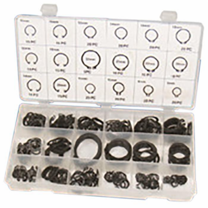 Assortimento: Interno 11mm 15 pz, 13mm 15 pz, 14mm 15 pz, 16mm 15 pz, 19mm 15 pz, 20mm 15 pz. Esterno 6mm 20 pz, 8mm 20 pz, 10mm 20 pz, 11mm 20 pz, 13mm 20 pz, 14mm 20 pz, 16mm 20 pz, 19mm 20 pz, 20mm 10 pz, 22mm 10 pz, 25mm 10 pz, 32mm 5 pz.