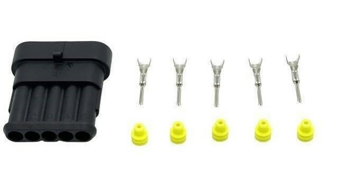 | Contenuto | 1 pz connettore 5 pz contatti 5 pz guarnizioni passacavo |