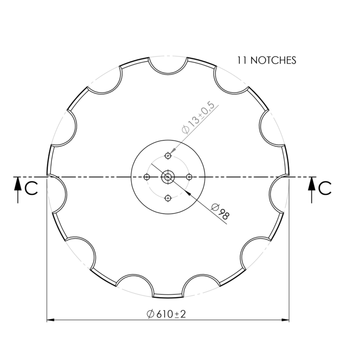 | Diametro - Dischi frangizolle dentati | 610 |