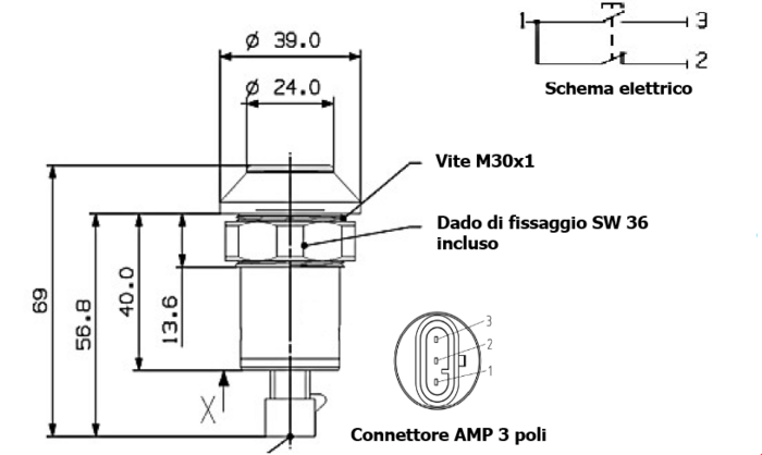 | Connettore - Interruttori a pulsante | AMP 3 poli |