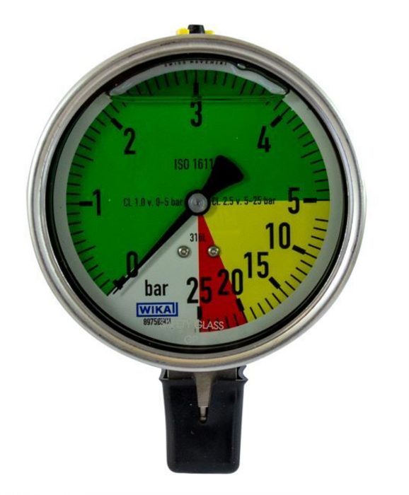 1-5 bar verde; 5-20 bar giallo; 20-25 bar rosso