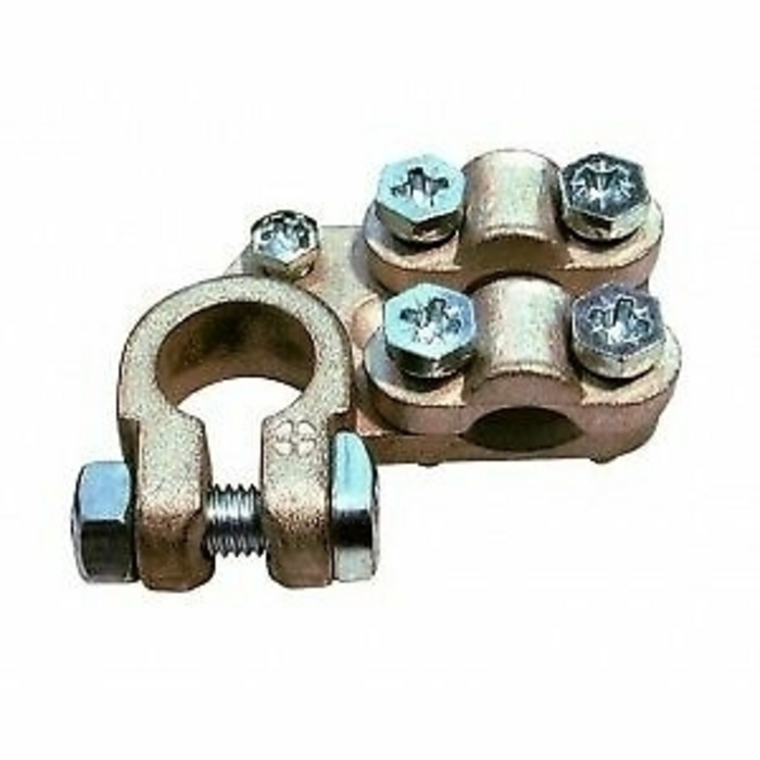 Morsetto per batteria in ottone tipo alfa rinforzato, con polarità negativa