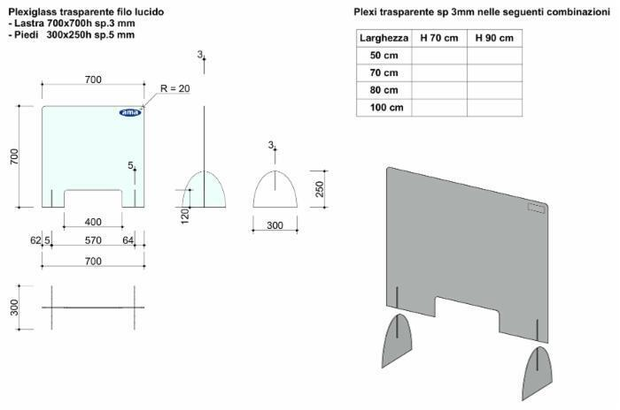 | Larghezza - Pannelli divisori in plexiglass | 50 cm |