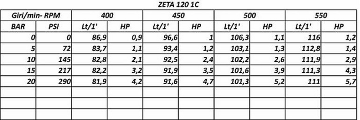 | Modello - Pompe a bassa pressione | ZETA 120 1C |