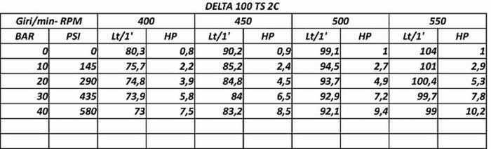 | Modello - Pompe ad alta pressione | DELTA 100 TS 2C |