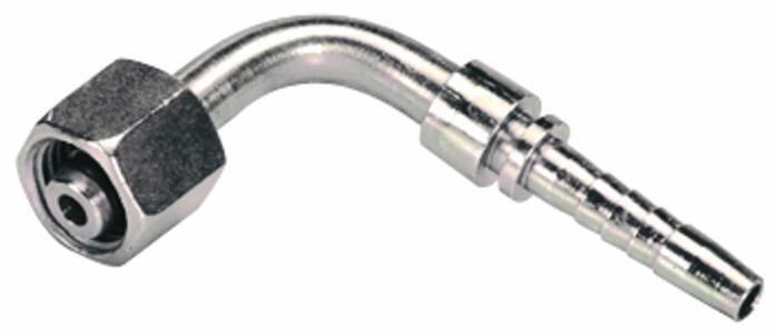 RACCORDO FEMMINA 90° A PRESSARE DIN 24° FILETTO 14X1,5 (8L) TUBO 1/4”