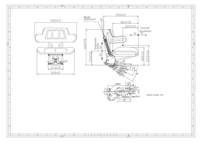 | Corsa sospensione - Sedili con molleggio meccanico | 110 mm |