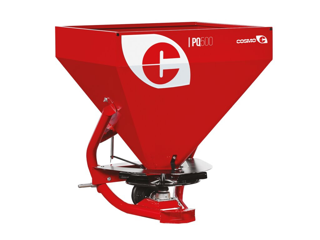Modello quadrato con tramoggia in acciaio, sistema di spaglio a disco con quattro o sei palette, ideale per le concimazioni granulari o cristalline.