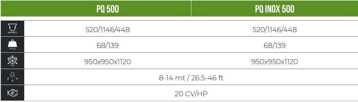 • PQ 500 (950x950x1120 mm)