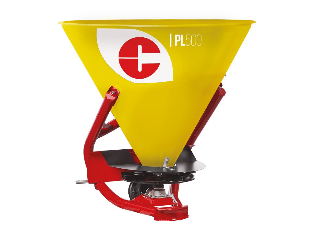 Modello conico con tramoggia in plastica, sistema di spaglio a disco con quattro o sei palette, ideale per le concimazioni granulari o cristalline.
