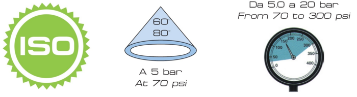 | Pressione di esercizio - Ugelli a cono | 5 Bar |