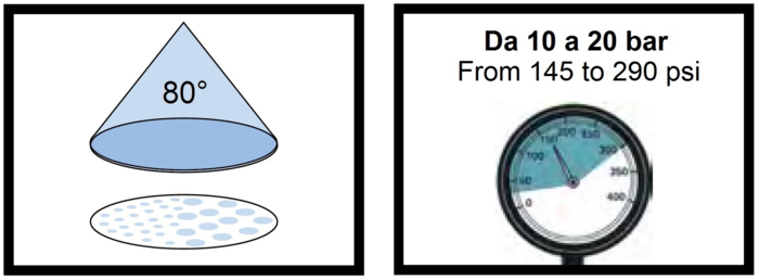 | Ampiezza getto | 80° |