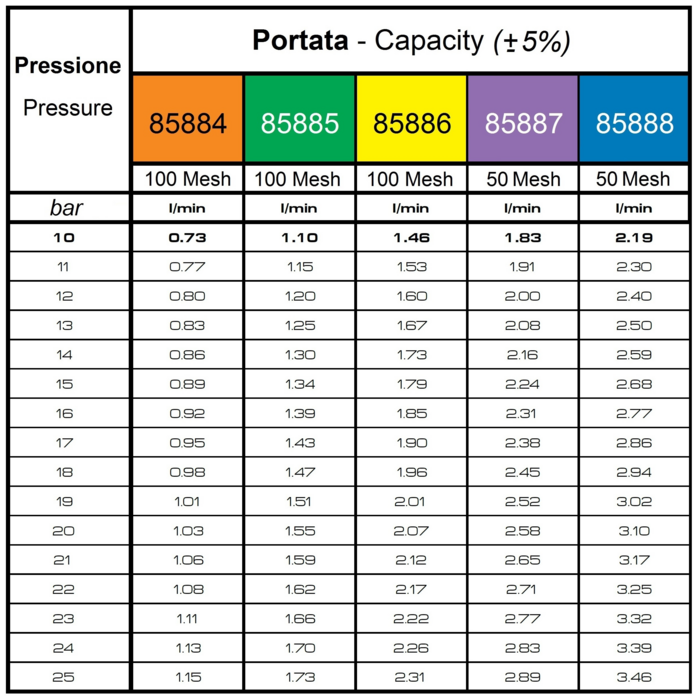 | Pressione di esercizio - Ugelli a ventaglio antideriva | 10 Bar |