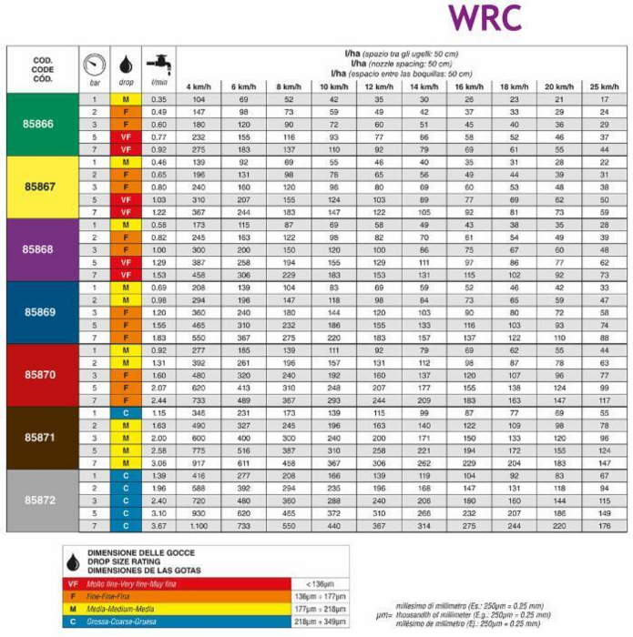| Modello - Ugelli a ventaglio | WRC 110° |