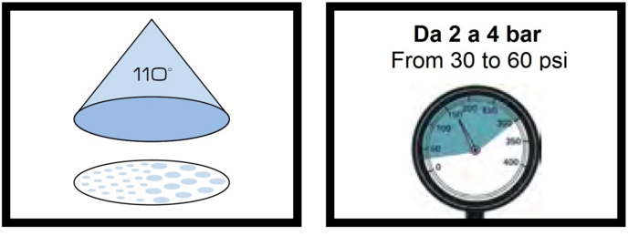 | Ampiezza getto - Ugelli a ventaglio | 110° |