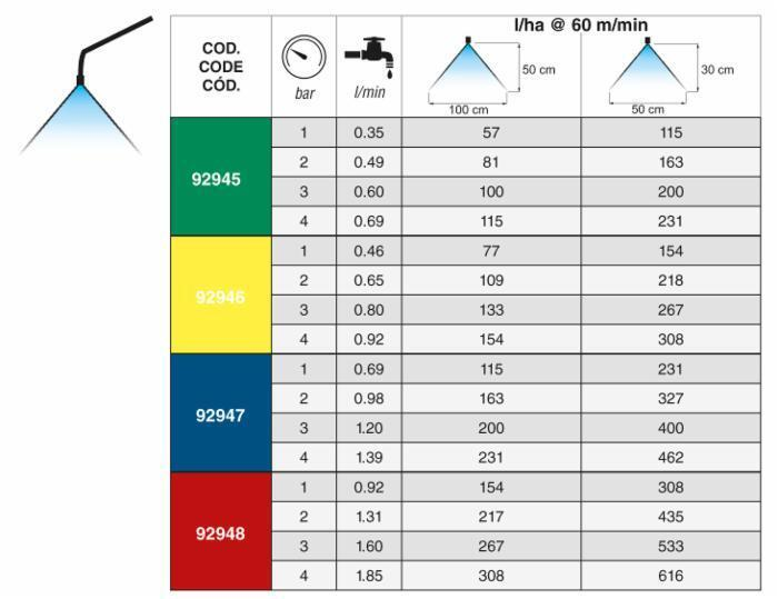 | Pressione di esercizio - Ugelli a ventaglio | 2 Bar |